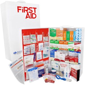 Looking for both OSHA and ANSI Compliance? Our best value for fully stocked Class B ANSI standards and full OSHA required content, this Large 1,125-piece 4-shelf industrial first aid cabinet meets and exceeds OSHA recommendations for businesses, offices and work sites that require a broader range and quantity of supplies to deal with injuries more complex or high-risk environments. The First Aid Cabinet serves up to 150 people and includes a tourniquet and a splint in addition to more common first aid kit cabinet content needed for these environments. Cabinet manufactured in America, and Kit assembled in USA of domestic and imported first aid content items meeting strict FDA, OSHA, and ANSI guidelines.