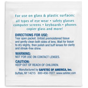 Safetec® Lens Cleaner Wipes are ideal for on-the-spot use at work and are sized to fit in your purse, pocket or glove compartment.