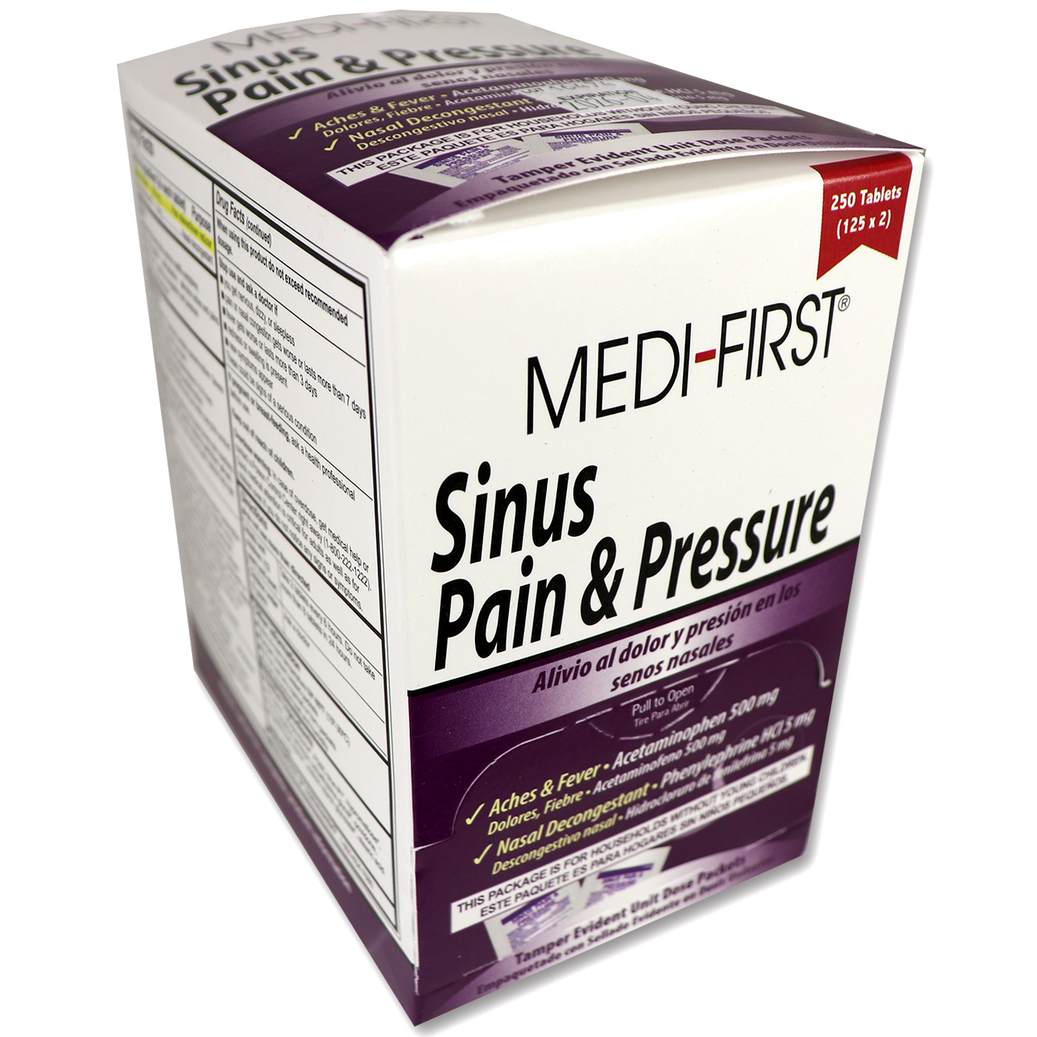 Sinus Pain & Pressure 250 tablet box. 125 packets of 2 tabs each